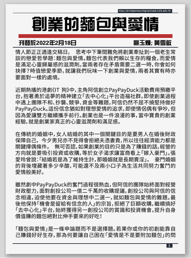 Author: Hugh Thomas; Weili Wang; CUHK Center for Entrepreneurship