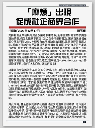 Author: CUHK Center for Entrepreneurship; HKCSS – HSBC Social Enterprise Business Centre (SEBC)