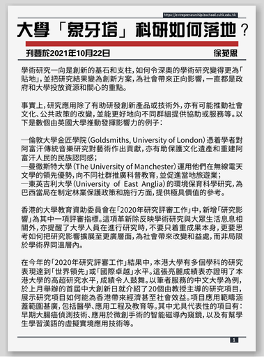 區玉輝. (2021). “大灣區如何能成為青年企業家的創業新天地?” 「拼灣區: 新世代 新產業 新生活」. 香港: 香港中文大學亞太研究所